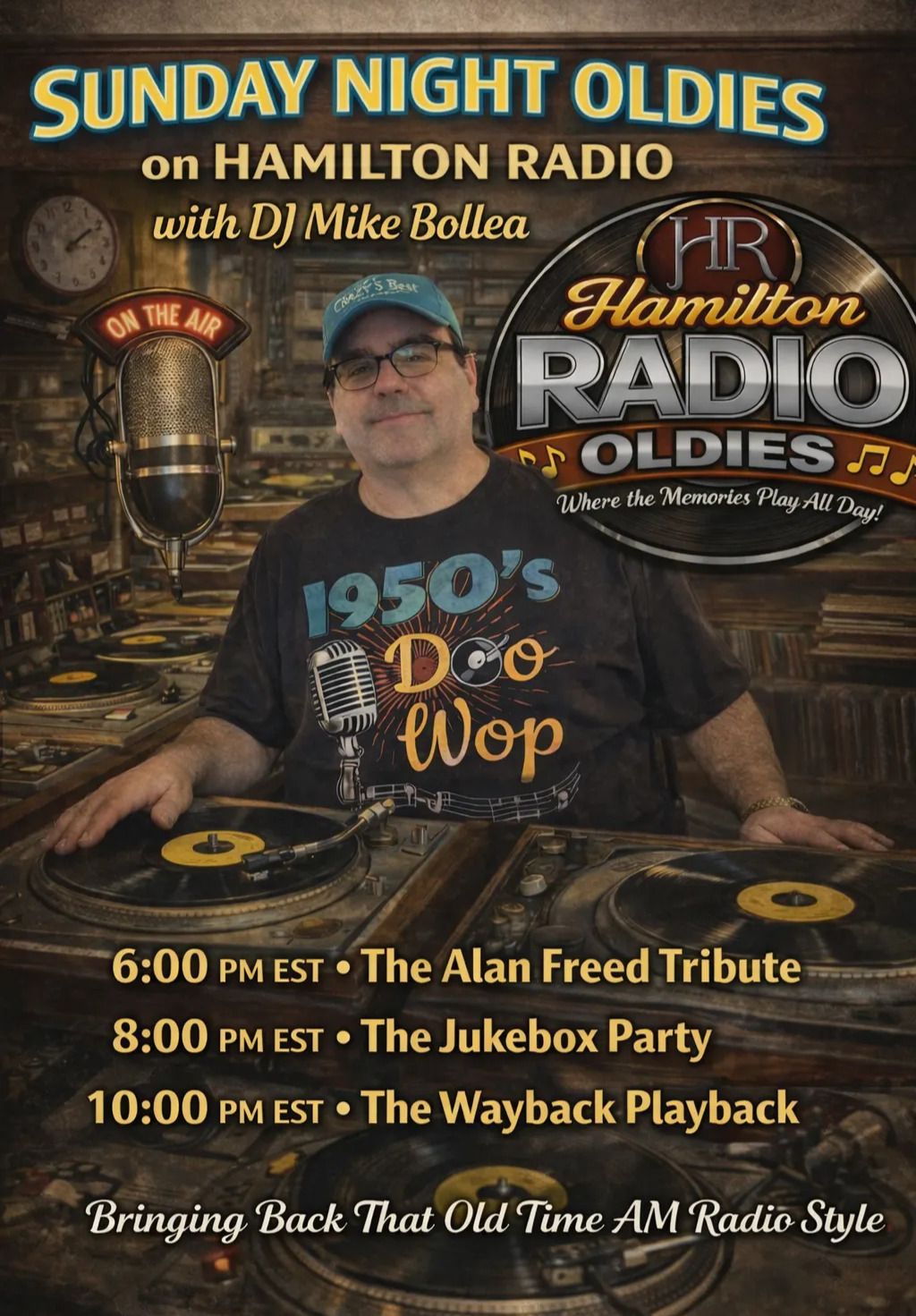 Memory Lane is a 3-hour LIVE show broadcasted every Saturday at 9:00 am EST featuring “Old Time Rock and Roll” music.